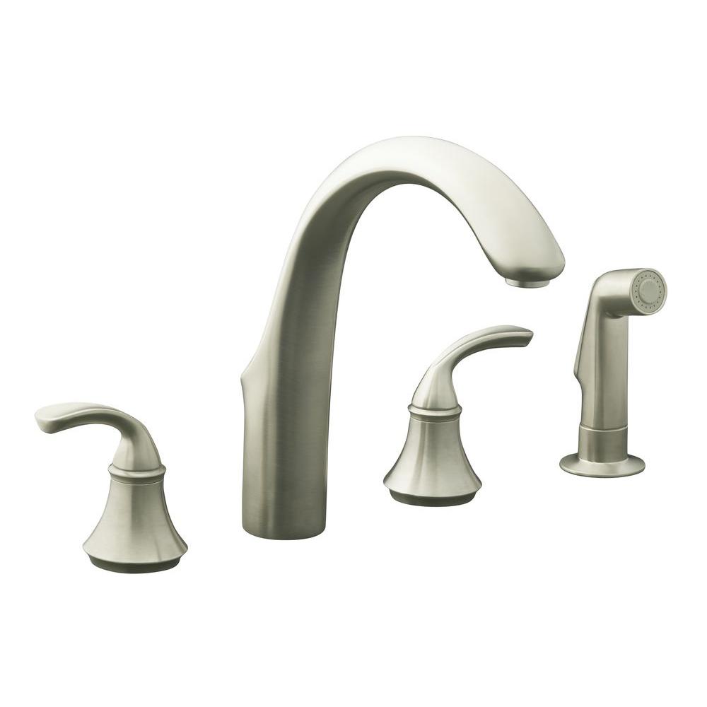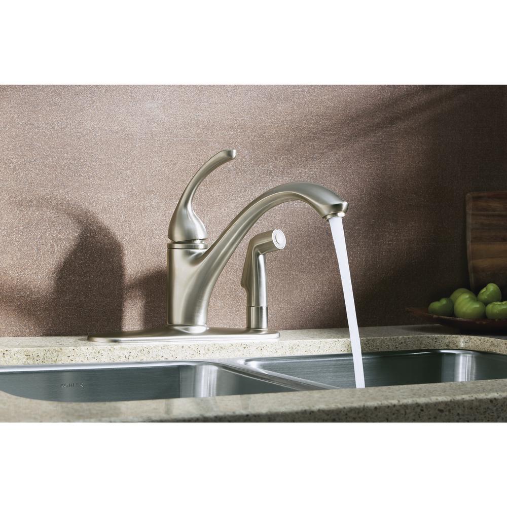 Kitchen Sink Faucets. Standard Shipping is FREE on all Parcel orders; $99 Flat Rate Standard Shipping on Freight orders (products that are too large, heavy or bulky for Parcel Shipping). Make Offer - Kohler K-10411-BN Forte Standard Kitchen Faucet in Vibrant Brushed Nickel Kohler Georgeson Single-Hole Single-Handle 1.2 GPM Bathroom Faucet $54.99 This Item: KOHLER Forte Single Handle Pull Out Kitchen Faucet with MasterClean Technology in Vibrant Brushed Nickel / $ 290.61 KOHLER Duostrainer Brass Basket Strainer with Tailpiece in Vibrant Brushed Nickel / $ 95.32 Kohler K-158-3 Antique Kitchen Faucet, Brushed Nickel: Kohler K-158-4 Antique Kitchen Sink Faucet, Brsh